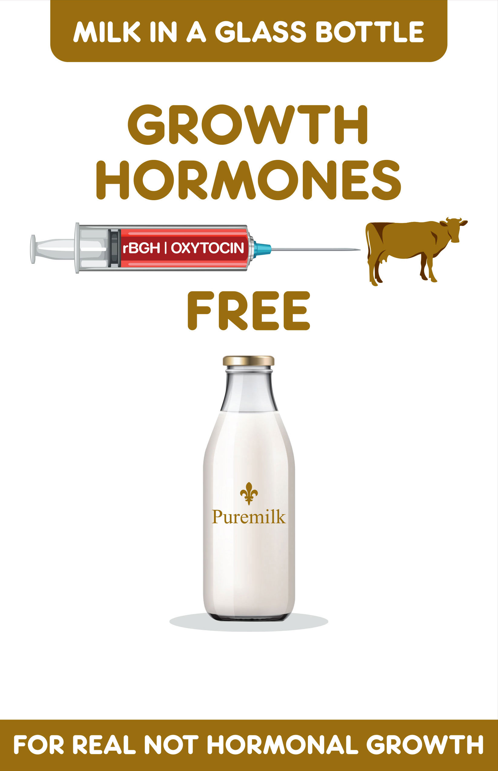 Puremilk is 100% oxytocin, antibiotic and hormone free. The single largest hazard in milk comes from spurious milk containing a daily dose of hormones. Milk cannot be relied upon unless it is pure or else it will hurt us rather than help us. Routinely injected hormones have the effect of advancing the age of puberty in children. We believe that such practices are a result of an ever increasing milk bubble where all that resembles milk sells. We urge our consumers to support our movement for pure milk which is free from any trace of oxytocin, antibiotic or hormones. Further, international food safety norms require milk from sick cows to be withdrawn from circulation. An ordinary farmer who is indifferent to hormones and antibiotic filled milk is of course not fazed while selling milk from a cow which is sick. These controls can only be kept when the management is aware and willing to prioritize above all the purity of milk.