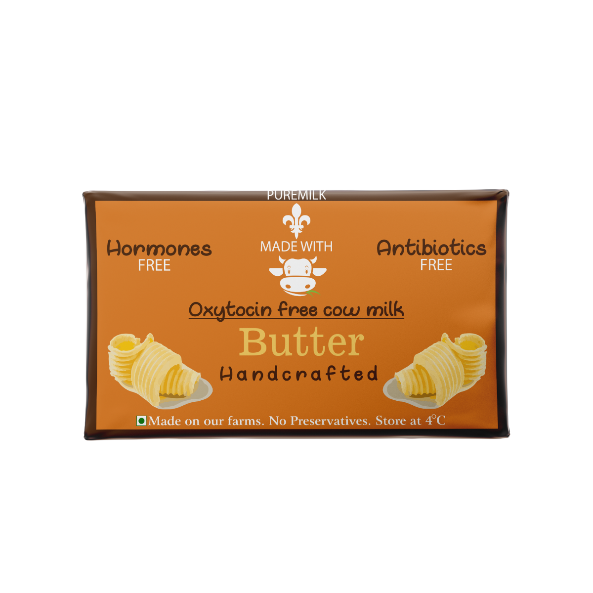 Our artisanal Butter has been prepared from milk produced on our own farms by green-fodder-fed-cows and is 100% free of injected hormones, antibiotics and oxytocin.