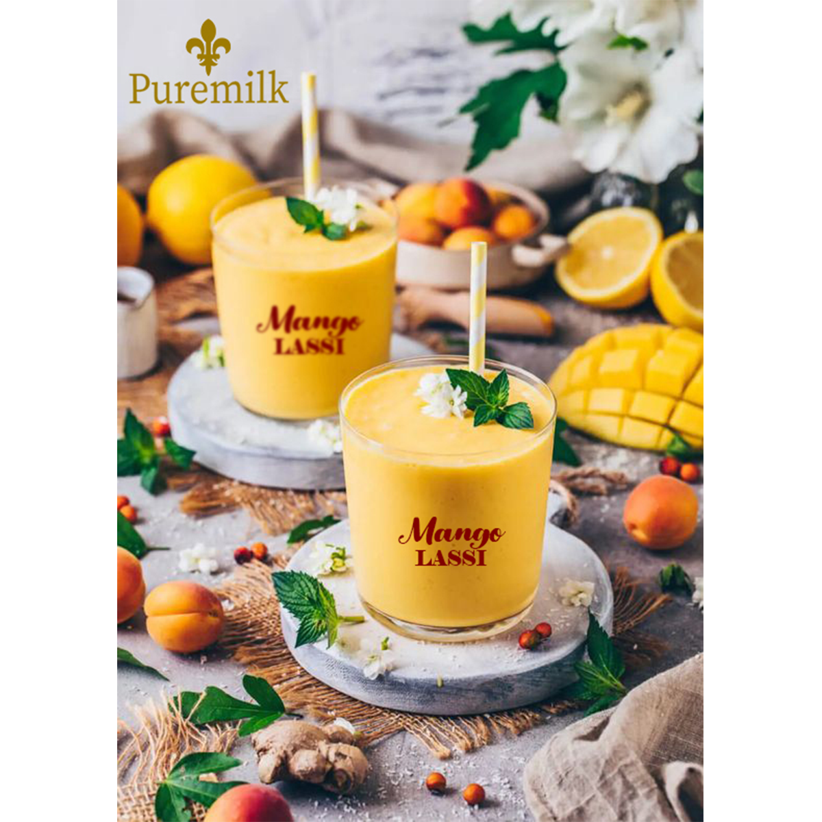 Our Mango Lassi is prepared from milk produced on our own farms by green-fodder-fed-cows and is 100% free of injected Hormones, Antibiotics and Oxytocin and contains no preservatives.
