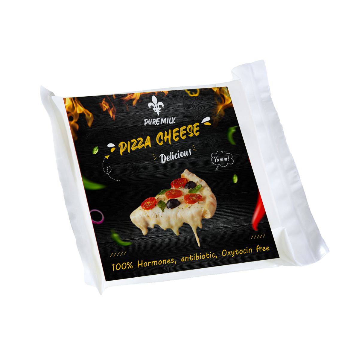 Our artisanal Fresh Pizza Cheese is prepared from milk produced on our own farms by green-fodder-fed-cows and is 100% free of injected Hormones, Antibiotics and Oxytocin. We give you the finest quality cheese packed with nutrients and containing no added preservatives.