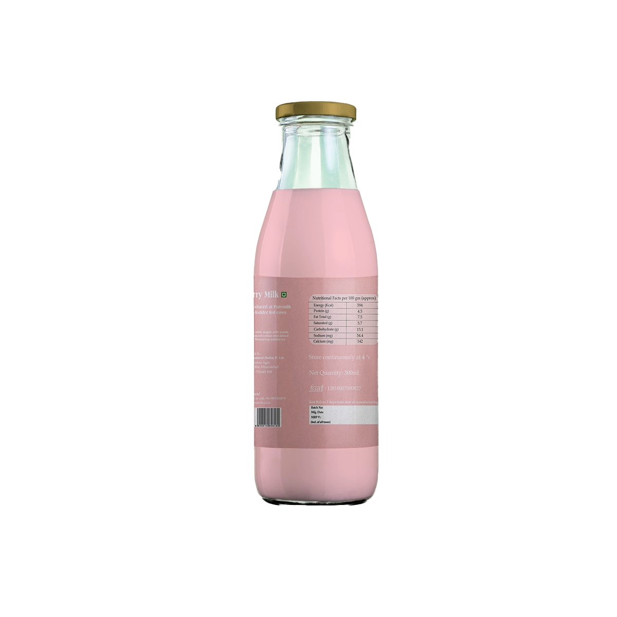 Our Artisanal Strawberry Milk is prepared from milk produced on our own farms by green-fodder-fed-cows and is 100% free of injected Hormones, Antibiotics and Oxytocin and contains no added preservatives.